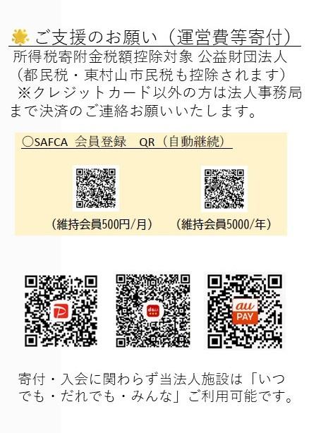 SAFCAは寄附金税額控除対象の公益財団法人です。寄付金額に応じて最大で所得税額の40%、東京都民の場合は東京都民税率の4%、さらに東村山市民ならば市民税率の6%が納税額から控除されます。